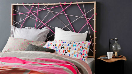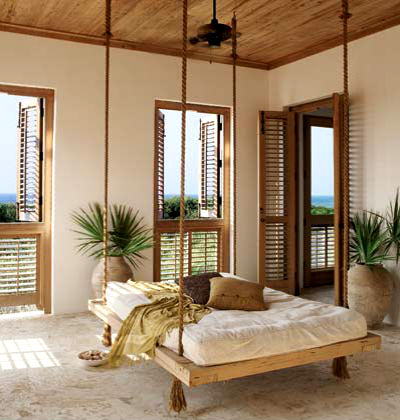 7. Следующий прекрасный способ применения веревки, декорирование спинки кровати. Последнее время, также очень актуальны подвесные кровати, которые крепятся к потолку на канатные веревки.