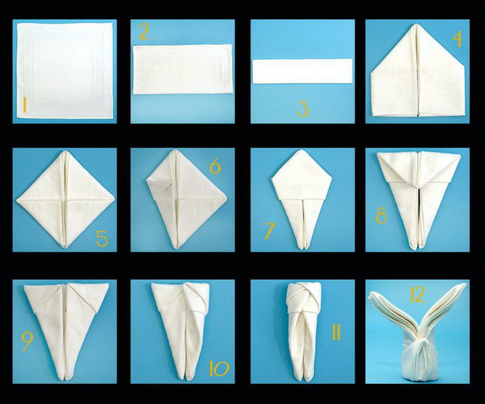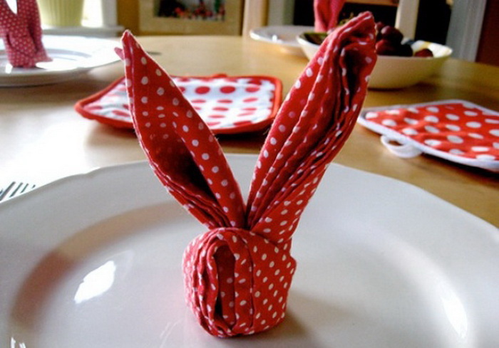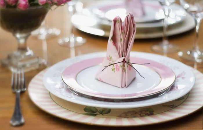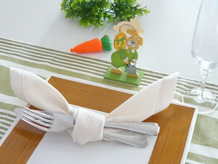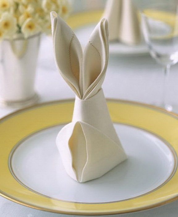 Завязал салфетку вокруг столовых приборов и тут же пасхальный кролик появился. Просто прелесть какая-то!