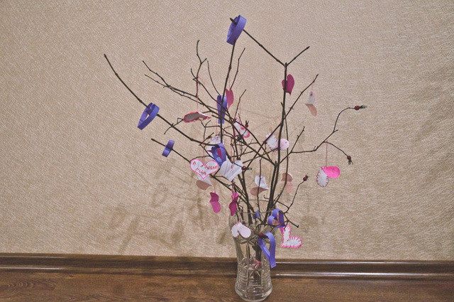 7. Когда веточки высохли, можно вешать сердечки и ставить на праздничный стол!
