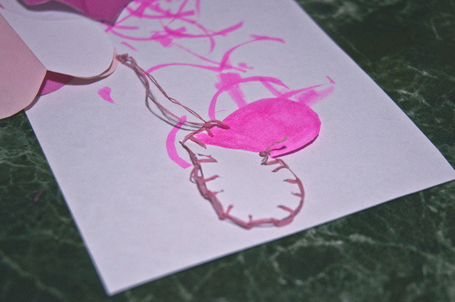 4. Не знаете, как украсить белые сердечки? Проштопайте их! А когда закончите — оставьте хвостик, чтобы повесить поделку на веточки.