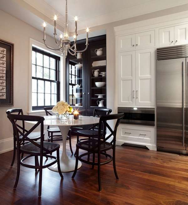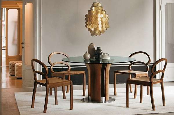 Когда площадь жилья позволяет — лучше отделить все же обеденную зону и организовать столовую. Дизайнерские столы и стулья должны соответствовать стилю оформления помещения, от этого будет зависеть выбор материала мебели, цветовой палитры и формы конструкции. Например, дизайнерские обеденные стулья в классическом стиле будут изготовлены из ценных сортов древесины, могут иметь декоративные элементы, такие как резьба или позолота. Более утонченные и изгибистые элементы мебели присутствуют в модерне. В современном минимализме отлично будут смотреться стулья для столовой дизайнерские, сделанные из пластика и металла, а для романтического направления прованс стоит остановить выбор на плетеной мебели.