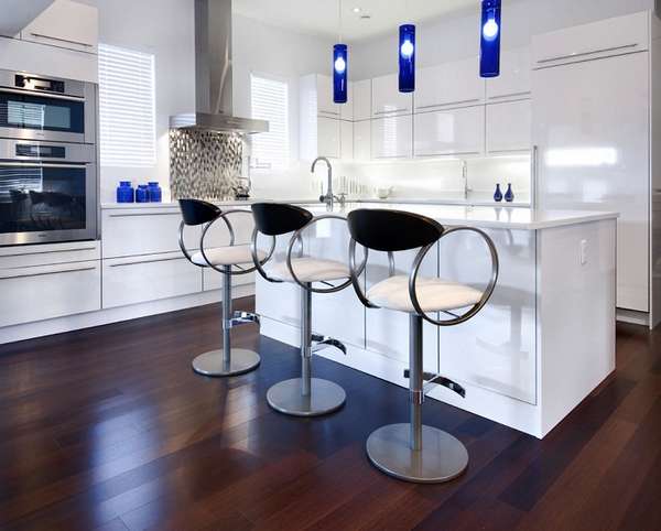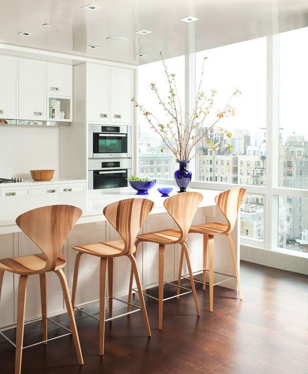 Оформление декоративных барных стоек в жилых квартирах стало нынче довольно популярным явлением. Соответственно, соорудив такую конструкцию в духе современности, необходимо подобрать к ней дизайнерские барные стулья. Сейчас их изготавливают из различных материалов, круглые, квадратные, стационарные, вращающиеся, они могут быть со спинкой, подлокотниками или напоминать по форме обычный табурет. Выбор модели производится из личных предпочтений и стилистики интерьера. Удобство во многом зависит от высоты сидения. Барные стулья для кухни дизайнерские должны быть сантиметров на 25 — 30 ниже столешницы. Тогда вы будете чувствовать себя комфортно. Если в доме есть дети, приобретите для них стулья с возможностью регулировки высоты. Стоит также рассмотреть модели, более адаптированные под домашний уют — полубарные стулья дизайнерские, фото которых размещены ниже в статье. Высота их, как правило, не превышает 70 см.