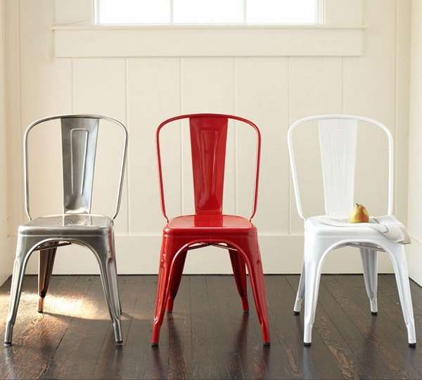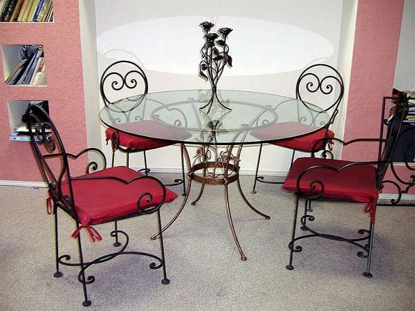 Железную мебель не так часто можно встретить в интерьерах. В большинстве случаев — это смешанные варианты. Например, дизайнерские металлические стулья изготавливают с мягким, деревянным или пластиковым сиденьем, т. е. из металла изготовлен лишь основной каркас. Прекрасно сочетается железо и со стеклом. Ножки бывают хромированные или окрашенные, как показано на фото. Удивляет универсальность данной мебели — она подходит абсолютно к любому интерьеру, обладая при этом стильным внешним видом и особой прочностью.