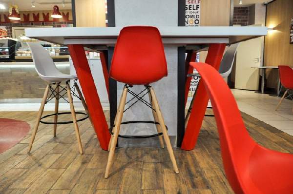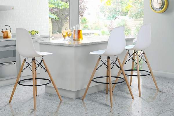 Свои отличительные черты имеет и барный стул Eameas. Это, в первую очередь, наличие круговой металлической подножки для большего удобства, комфортное сиденье и спинка, а также устойчивые высокие деревянные ножки. Стул представлен в разнообразных вариантах расцветки.