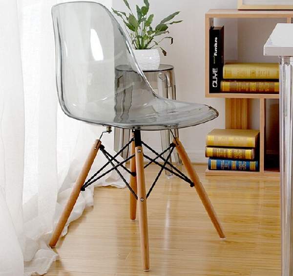 В последние годы наблюдается растущий интерес к прозрачным элементам мебели. Они изящны, воздушны и практически не ощутимы в пространстве. Таковым представителем является стул Eames DSW glass на деревянных ножках. Такие модели прекрасно смотрятся во многих современных интерьерах, особенно, выполненных в стиле минимализм. Это целая серия мебели, включающая в себя и прозрачные столы. На фото нам представлены варианты, где стул Eames DSW glass имеет подлокотники, оформлен в барном варианте.
