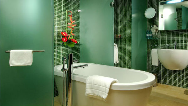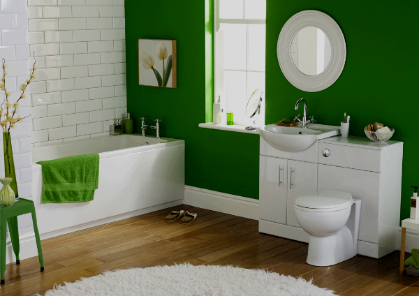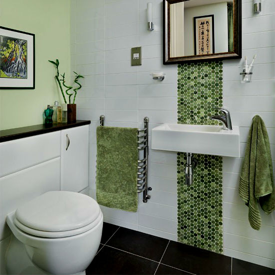 Зеленая ванная комната при одном только взгляде заряжает позитивом, так и чувствуется единство с природой, а ведь это чувство можно дополнить, расставив в ванной несколько горшков с влаголюбивыми растениями, правда необходимо помнить – все растения любят свет, поэтому данный вариант больше подходит ванным комнатам с оконными проемами.