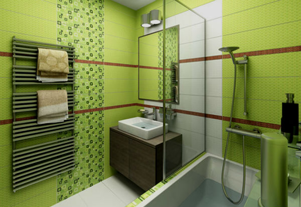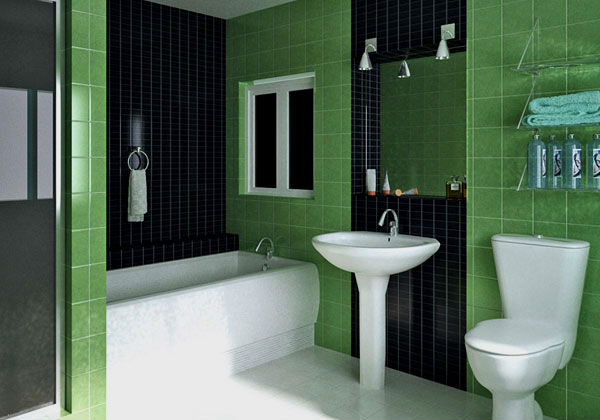Отделка зеленой ванной.