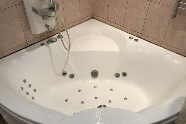 Как правило, температура гидромассажа не должна превышать 47 °С из-за риска получения ожогов. Стандартная джакузи может быть такого же размера, как и любая угловая ванна 150х150 или 180х180 см. Для небольшой квартиры идеально подойдет мини-вариант 130х130 см.