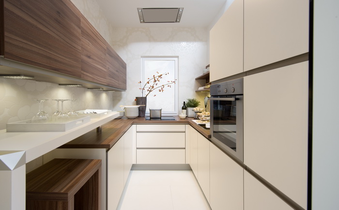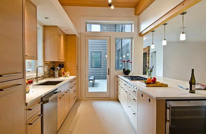 Дизайн длинной кухни