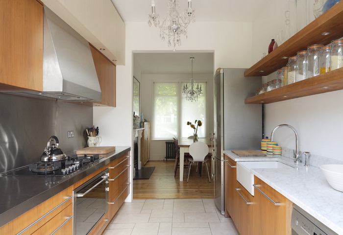 Длинная кухня – это один из случаев, когда недостаток комнаты, становится достоинством. Если правильно организовать дизайн кухни, то хозяйке понравиться настолько, что другого она не захочет.