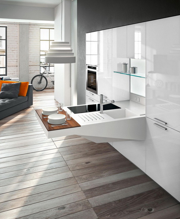4.Если вы все-таки решились перепланировать свое жилое пространство и объединить кухню и жилую зону — выберите кухню-трансформер.