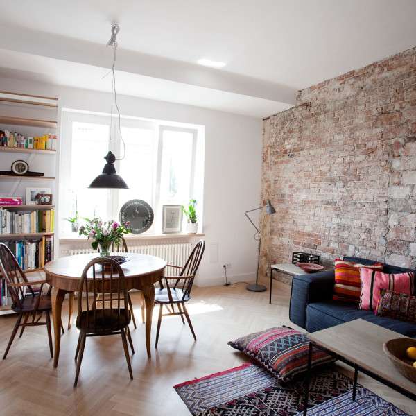 Считается, что для дизайна маленькой квартиры не подходят яркие или сильно темные цвета. Существует традиция, согласно которой однокомнатный интерьер почти всегда имеет светлые стены и потолок. Однако, в современной квартире студии или при минималистском оформлении, когда комната не завалена лишними вещами и декором, вполне дозволяется экспериментировать с более насыщенными красками. Главное помните, что в маленьком пространстве лучше избегать мелких узоров и большого числа деталей.