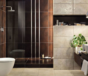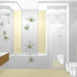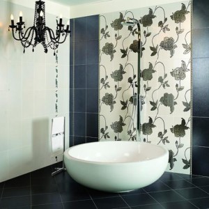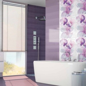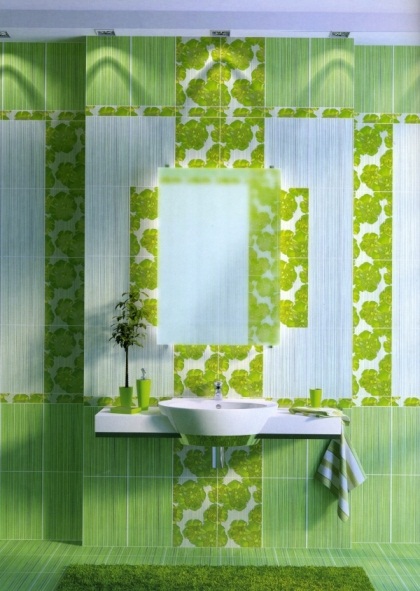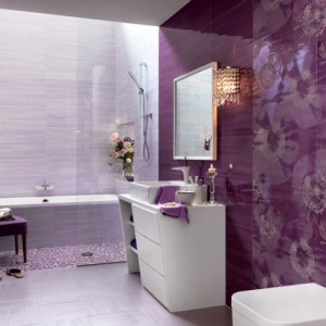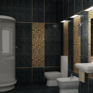 Кафельный дизайн в ванной комнате может создать удивительную картину, так например, выбирая плитку на стены в виде узоров или каких либо геометрических фигур, укладывать их советуем в вертикальном положении. Такой прием зрительно добавит высоту стен. Еще следует заметить, что плитку желательно подобрать глянцевой текстуры, своим отблеском она сыграет роль зеркала, и сделает стены в ванной комнате объемными.
