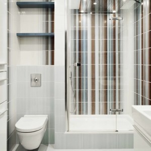 - Не стоит использовать плитку крупного размера, это уменьшает помещение, оптимальное решение – небольшая кафельная плитка для ванной комнаты.