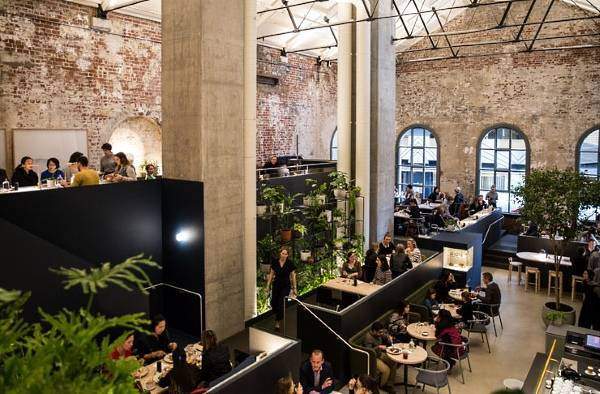 Кафе Higher Ground было обустроено в здании бывшей электростанции Мельбурна и является лучшим примером дизайна кафе в стиле лофт. При всей своей сдержанности, интерьер заведения привлекает своими масштабами и разнообразием столиков для заказа. В нём идеально сочетается старое и новое, любовь к природе и к индустриальному стилю, поэтому в 2016 году Higher Ground получили награду «Лучший дизайн кафе» по версии Eat Drink Design Awards.