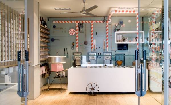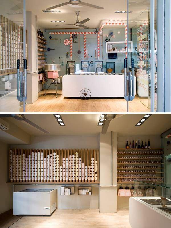 Завершим наш обзор красивых баров и ресторанов с этим маленьким кафе в Жироне, Испания. Сказочный дизайн интерьера в духе Вилли Вонка заманивает детей и взрослых с улицы через стеклянные входные двери. Оказавшись внутри, вы уже никак не сможете отказать себе в паре порций мороженого, это уж точно!