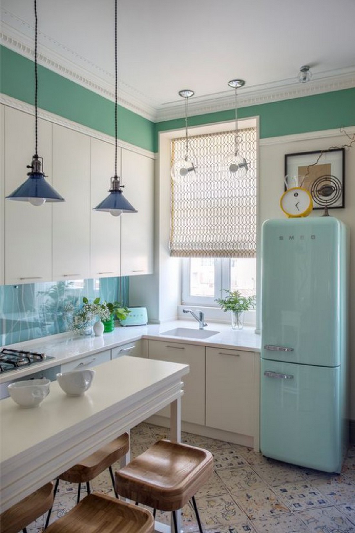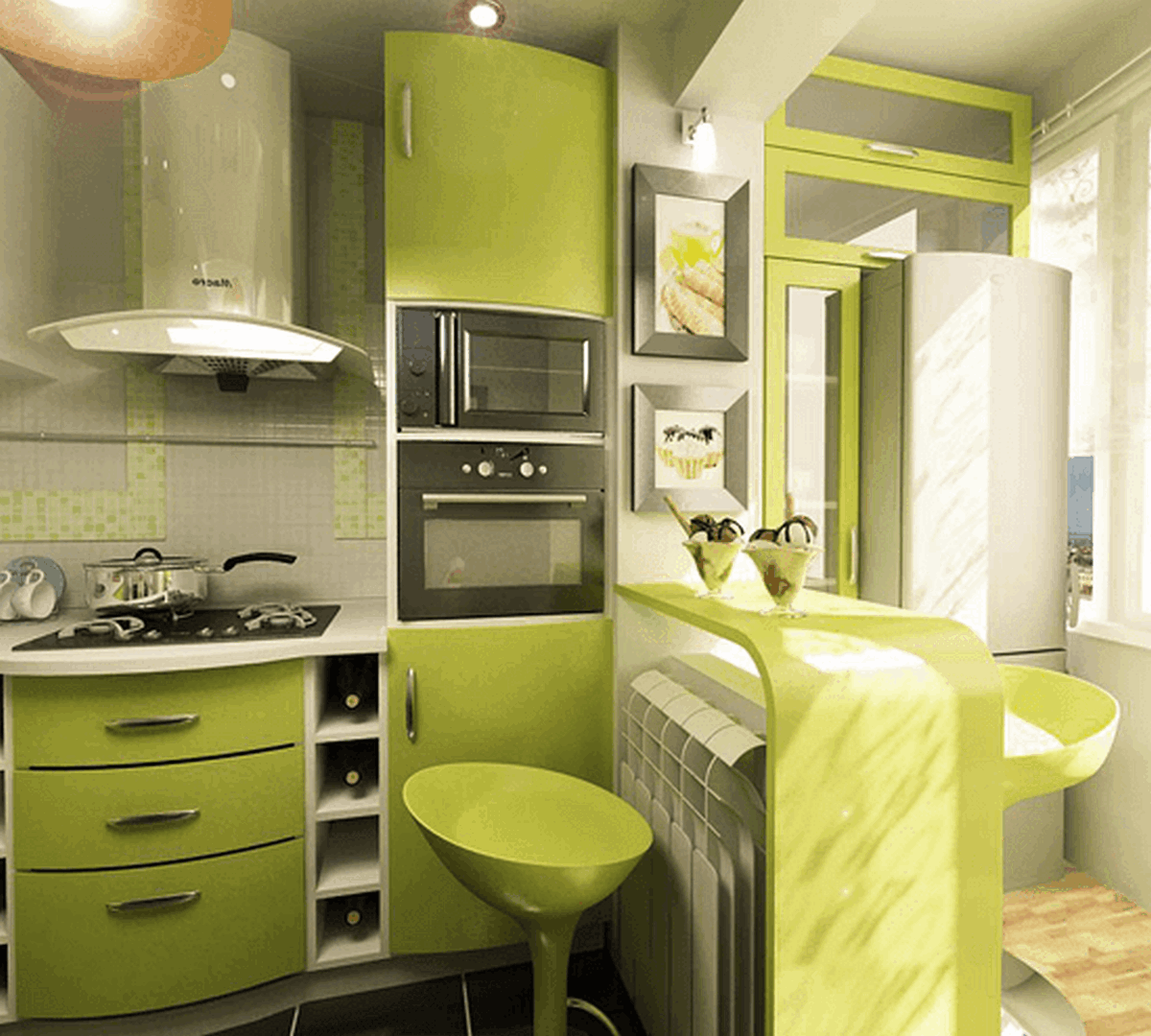 Такое решение будет выглядеть просто отлично на любой кухне, а уж на маленькой и подавно.