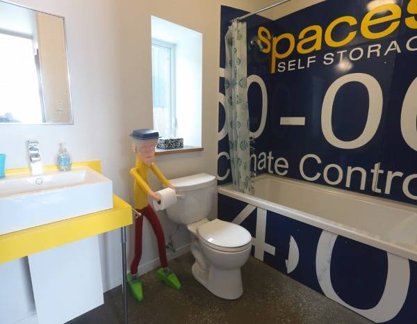 Отметим, что для экономии места дверь в совмещенный санузел должна открываться наружу. Место над ней — еще один козырь в рукаве опытного дизайнера. Здесь вы можете организовать дополнительное пространство для хранения.