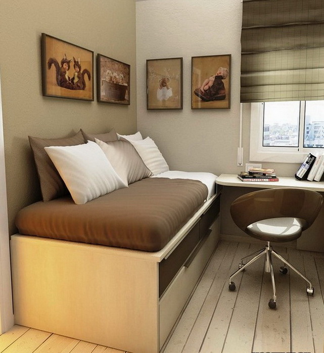 • Для большей экономии свободного места в маленькой детской, можно организовать рабочий стол вблизи окна, заменив столом подоконник.