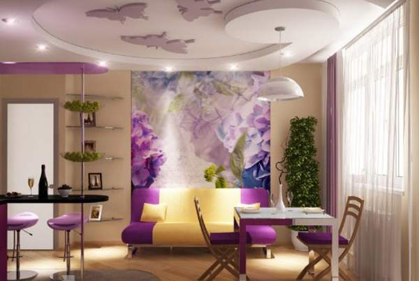 Что касается цветовой гаммы, то для зала в хрущевке лучше использовать светлые оттенки: так помещение кажется шире и светлее. Однако, необходимы и яркие цветовые акценты, чтобы комната не выглядела слишком однообразно. Стены лучше сделать однотонными или с мелким рисунком, а также, при желании, одну из стен можно украсить масштабным изображением.
