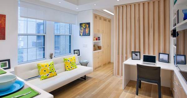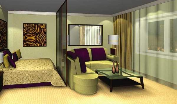 Не стоит беспокоиться, что пространство «сольется», ведь можно зонировать помещение с помощью арок либо разных элементов отделки пола и стен. Хорошо будет включить в дизайн маленьких квартир хрущевок шкаф или диван, раскладывающийся в кровать, ведь тогда вам не придется выделять отдельное место для спальной зоны.