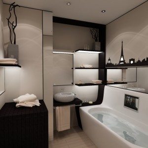 После того, как Вы определились со стилем, необходимо выбрать акцент, или центр внимания Вашей ванной.  Интерьер небольшой ванной комнаты не нуждается в скоплении декоративных мелочей, которые вносят в него только беспорядок.