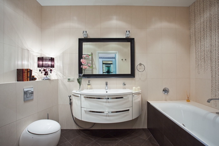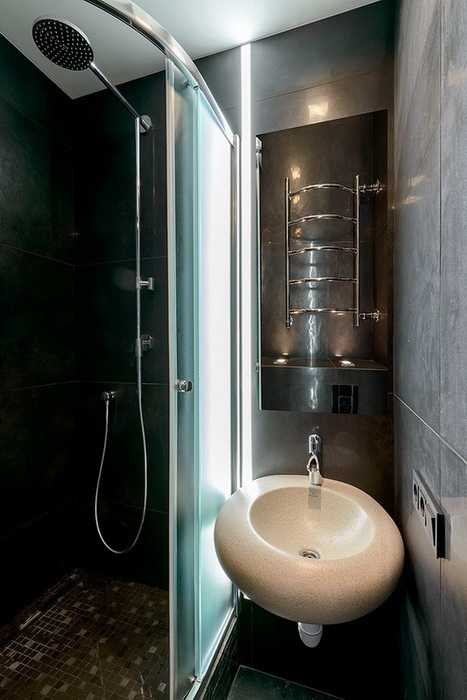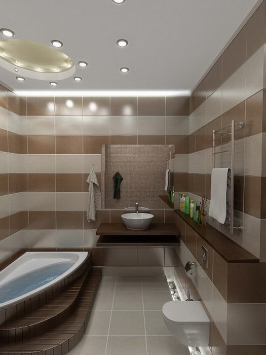 Интерьеры ванных комнат – это маленькие шедевры дизайнеров. Что можно придумать в помещении размером 2 на 1,5 метра (иногда больше, а скорее всего меньше), не забывая при этом о необходимой здесь атрибутике. Несомненно, разнообразие оригинальных форм фаянсовых изделий на руку нашим дизайнерам, но, а дальше? Дальше — только полёт фантазии. Ещё, конечно, мастерство воплощения этих идей. Аккуратность, прежде всего. Рассматривая эти фото, очень трудно выбрать какую ванную, именно, тебе бы хотелось.