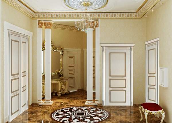 В этом стиле основными материалами для стен являются дерево и камень. Это могут быть обои, декоративный камень или штукатурка, напольной поверхности будет соответствовать ламинат или паркет. Главная особенность классики — высокое качество используемых материалов, поэтому дизайн прихожей в квартире в этом стиле потребует значительных финансовых затрат.