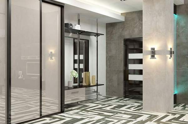 Хай тек — наиболее выгодный современный стиль для маленьких помещений. Дизайн прихожей в квартире, оформленный в этом направлении, сможет визуально расширить комнату благодаря наличию, как составляющих, глянцевых поверхностей, стекла и металла.