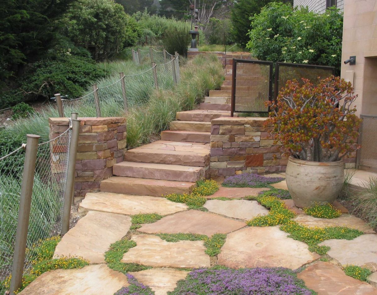 Из бетона можно самостоятельно отлить ступени, вазоны, бордюры. А еще можно соорудить роскошные цветники из камня.