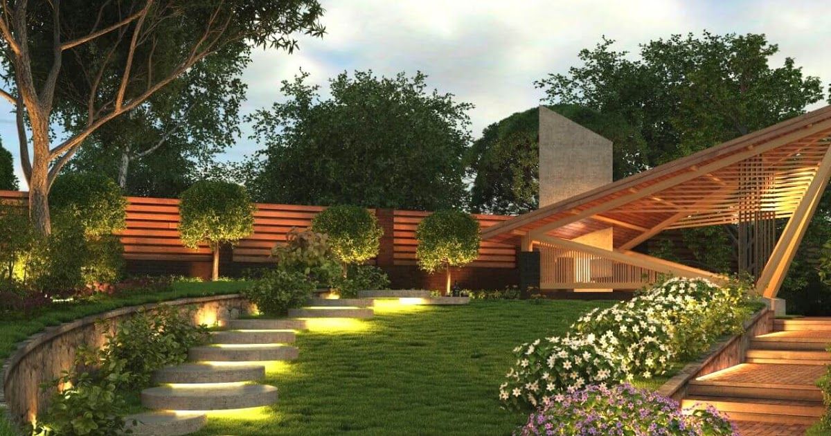 Интересный дизайн садового участка в вечернее время заиграет новыми красками, если дополнить проект световыми акцентами.