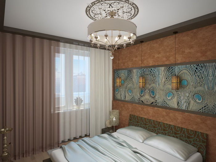 Зачастую, в маленьких спальнях не используют основное центральное освещение, а вешают на стены бра.