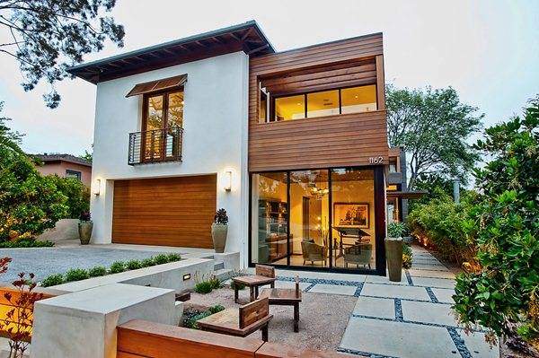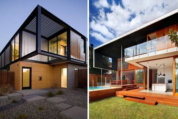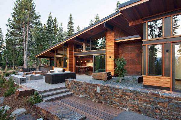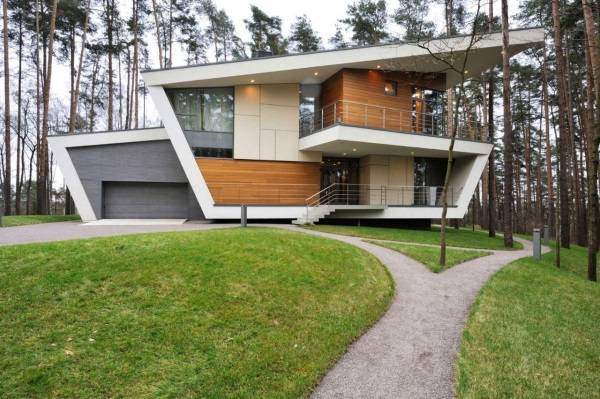 Деревянные дома также могут иметь дизайн фасада в стиле хай тек. Более того, брус поможет смягчить холодный и строгий внешний вид дома, а также позволит ему гармонично вписываться в окружающую среду. В завершение этой статьи — еще 6 красивых фото частных домов!
