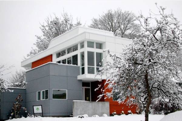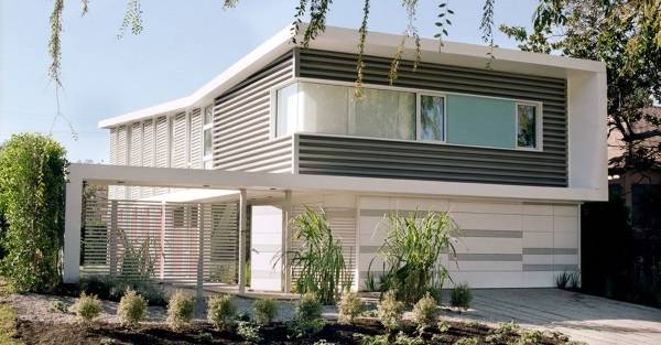 Как же всё это выглядит в реальности? Смотрите экстерьеры дома в стиле хай тек на следующих фото!