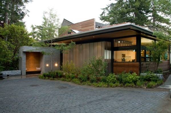 - Сочетание материалов с разными текстурами и расцветками (дерево и металл, дерево и бетон, стекло и пластик);