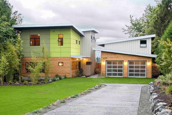 Каркасные дома из сип-панелей любят за их относительно невысокую стоимость, простоту и скорость монтажа, а также хорошие теплоизоляционные свойства. Проект каждого дома создается индивидуально, а значит, он может иметь любые формы, размеры и пропорции в зависимости от участка и потребностей заказчика. Эта особенность, в сочетании с экологичностью и возможностью отделать фасад любым материалом по выбору, позволяют собирать из сип-панелей очень стильные частные дома в стиле хай тек. Убедитесь, взглянув на следующие фото!