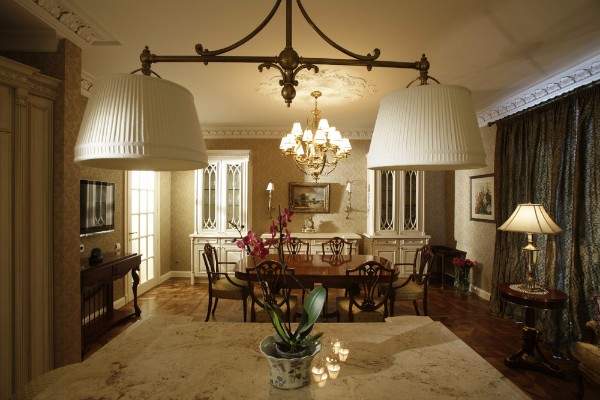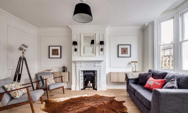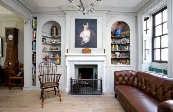 Камин — какой же английский дом, без камина? В условиях холодной и сырой погоды, он выполняет не только эстетическую функцию, но и практическую. Наилучшим вариантом станет настоящий камин, а не электрический, но все зависит от возможностей жилплощади. Чаще всего камин становится центром комнаты, отталкиваясь от него будут расставляться диван, кресла и другая мебель.