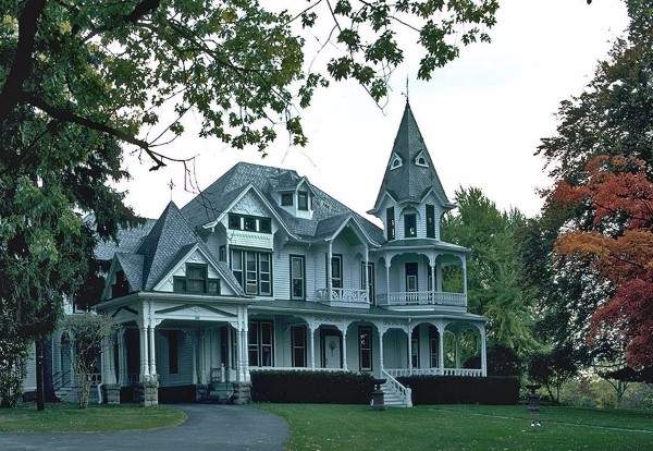 Этот стиль характеризуется симметричностью со входом в центр. Потолки в домах в викторианском стиле низкие, исходя из этого, окна второго этажа так же расположены довольно низко. Сами окна имеют округлую форму. Крышу дома покрывают сланцем и в качестве украшений используют симметричные трубы, конусообразные башни и цилиндрические постройки. Фасад дома в английском стиле имеет такие яркие отличия, как: витражи, мозаичная кладка и фигурная ковка. Непосредственная отделка дома совершается с помощью кирпичной кладки. Карнизы, двери и оконные переходы выполнены в контрастных цветах.