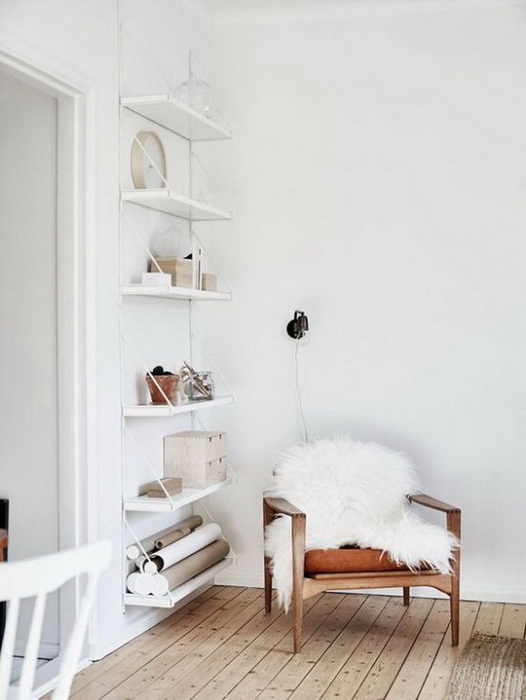 Белый пол, одновременно со светлыми стенами и мебелью, максимально увеличит пространство, сделав его воздушным. Если хотите добавить яркости в такое белое облако, наполните комнату декоративными элементами: подушками, статуэтками, картинами броских цветов и узоров. Ну, а для интерьера в модном скандинавском стиле – это вообще наилучший вариант.