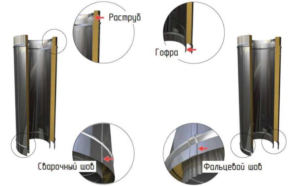 Типы сборки дымохода из металла и сэндвич-труб