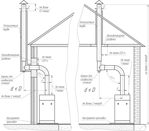 Дымоход для газового котла: устройство, конструкция, диаметр