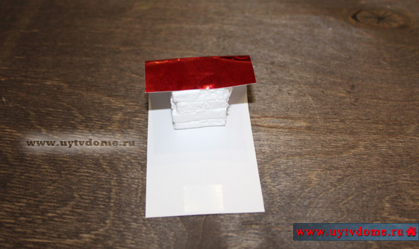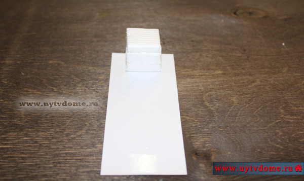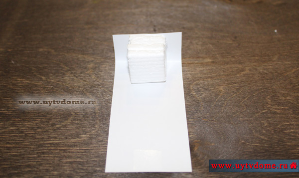 Укладываем кубик из пенопласта сверху листа строго по центру.
