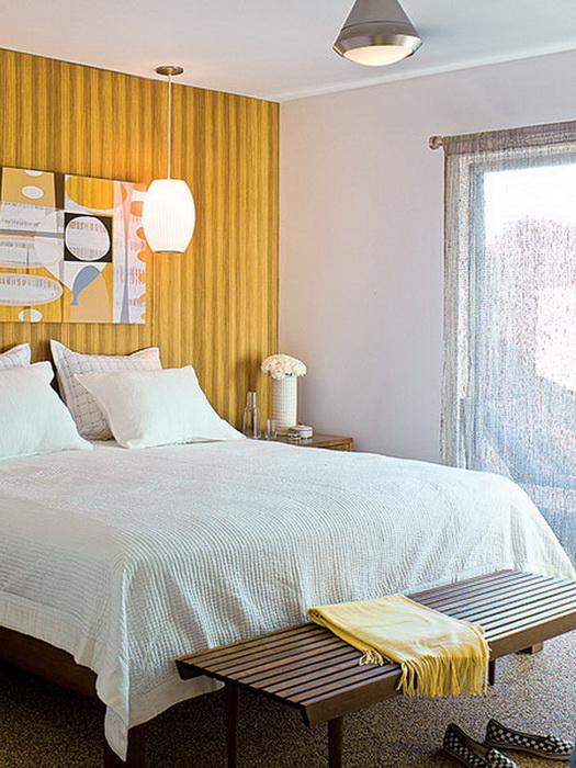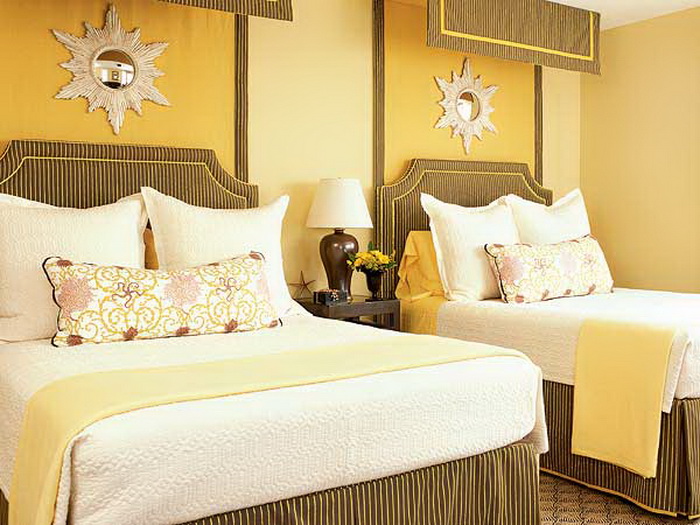 Спальня — место отдыха, а потому тут важно создать уютную атмосферу, располагающую к покою. Для спальни не подходит чистый желтый цвет.
