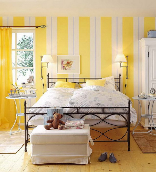 Для стен лучше подобрать нежные тона желтого и уравновесить его белым цветом.
