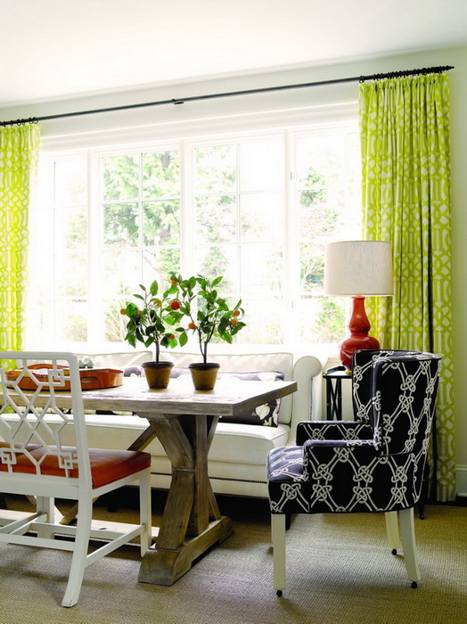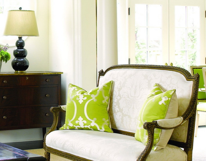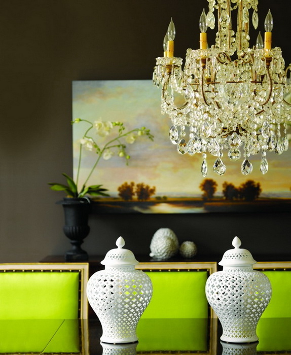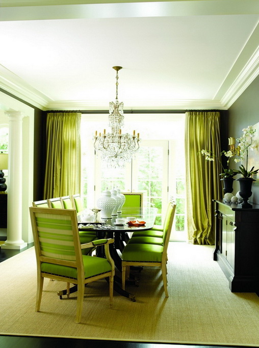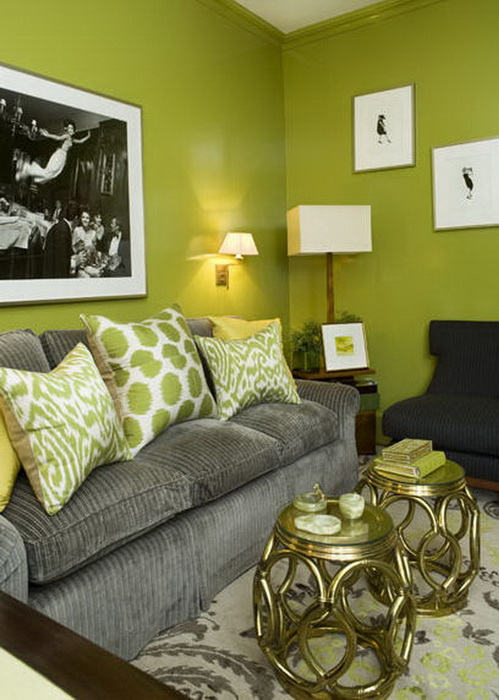 Посмотрите как по-разному играет этот необычный желто-зелёный цвет от освещения от обстановки от разного сочетания с другими цветами. Что-то мы с удовольствием принимаем, а что-то нам категорически не нравиться. Великолепно смотрится зелёный на стенах в сочетании с серым, бронзовым, белым.