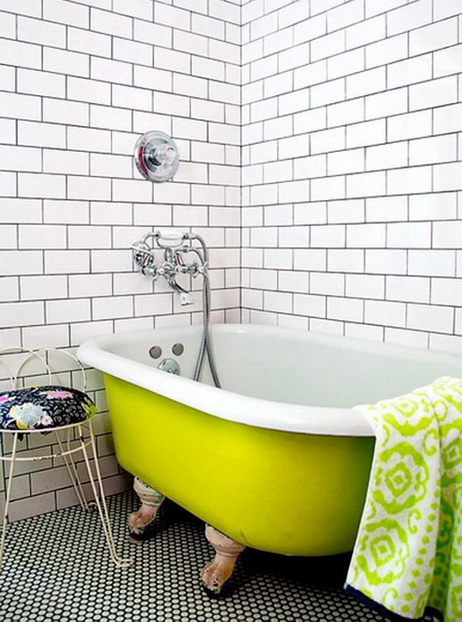 Можно подумать, что в комнате с тёмно зелёными, почти болотного цвета, стенами было бы уныло и тоскливо. Но дизайнеры устраивают взрыв цвета. В любом другом интерьере этот неоновый зелёный выглядел через чур бы. Но здесь он приглушён стенами. От этого интенсивного цвета комната и предметы в ней начинают светиться – интересный необычный эффект.