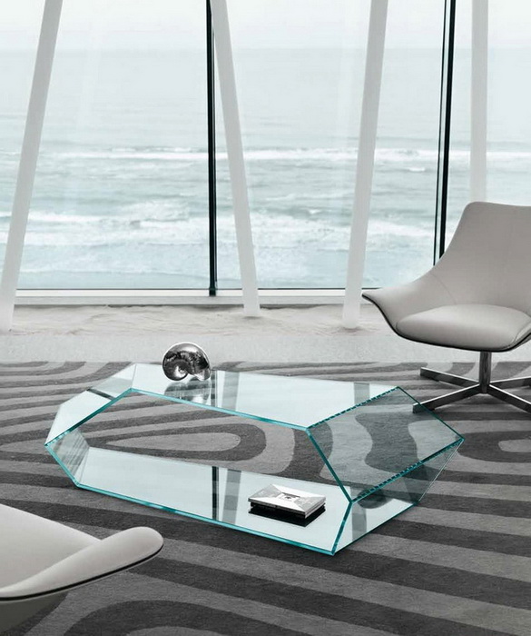 Стеклянный журнальный столик не заменим в маленьких гостиных, своей прозрачностью не отвлекает внимание от интерьера, сохраняя ощущение свободного пространства и простора.