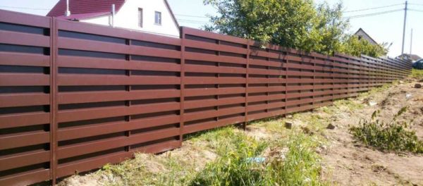 Чаще всего планки крепяться вертикально, но есть и горизонтальный способ монтажа — он также может быть однорядным или двухрядным. Смотрится горизонтальный забор более «экзотично». При двухрядном (двухстороннем) монтаже планок получается вообще непрозрачным.