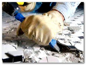 - Удалять поврежденную плитку следует по частям, применяя долото и молоток.