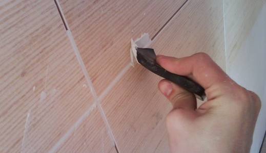 - При помощи шпателя следует удалить примерно половину толщины старого шовного слоя.